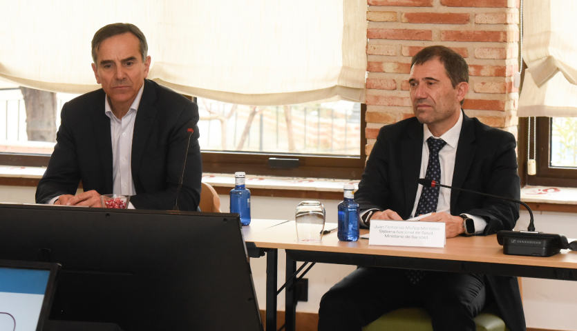 El director general de Farmaindustria, Juan Yermo, y el secretario general de Salud Digital, Información e Innovación del SNS. Ministerio de Sanidad, Juan Fernando Muñoz.